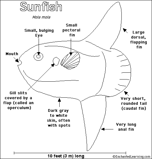 Sunfish develop their bullet-like shape because the back fin which they are born with simply never grows. Instead, it folds into itself as the enormous creature matures, creating a rounded rudder called a clavus. Mola being the scientific name are found in temperate and tropical oceans around the
